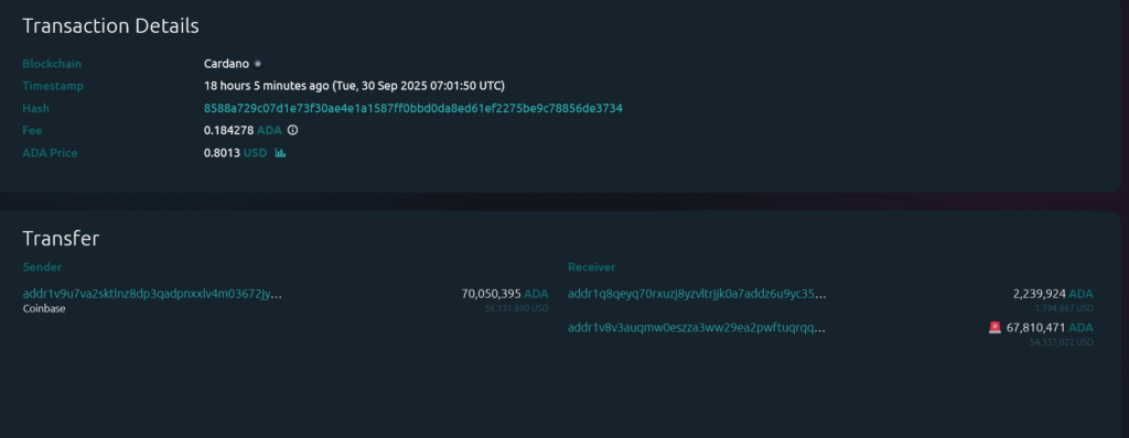 Cardano Whale Tarik $54 Juta dari Coinbase, Sinyal Beli di Saat Harga Turun?